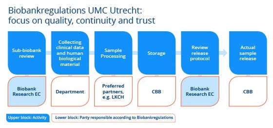 The issues above have been worked out in the UMC Utrecht Biobank Regulations.pdf that have been in effect since 2013. With the Biobank Regulations the UMC Utrecht aims to build a high quality infrastructure for medical scientific research for all UMC Utrecht researchers and her partners. To reach this goal, an independent committee, the Biobank Research Ethics Committee (TCBio), reviews if the human biological material and data are collected and stored in a responsible way in the biobank according to the criteria of the Biobank Regulations. Similarly, the committee reviews if the material and associated data will be used in a responsible way in scientific research. This governance model doesn’t solely serve the interests of the donors but also those of the researcher and society as a whole by making sure that the (scarce) material will be used for the right projects. In addition, the quality and registration of the human biological material in the biobank is guarded by the Central Biobank UMC Utrecht.